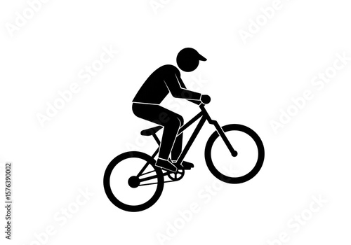 © Muhammad, Fototapeta premium Silhouette of a cyclist performing a wheelie on a bicycle against a white background plain image