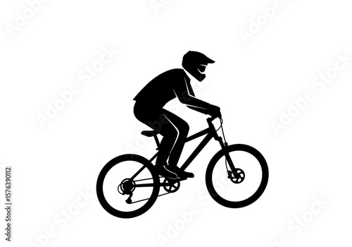 © Muhammad, Fototapeta premium Silhouette of a cyclist with helmet riding a mountain bike on a white background in vector format
