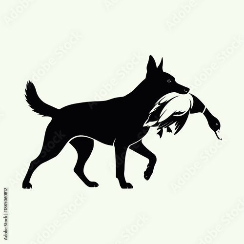 Fototapeta premium Silhouette of a Dog Retrieving a Duck with Precision.