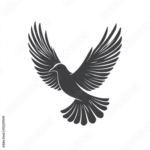 © lestari, Obraz premium Silhouette of a dove in flight, wings spread wide.