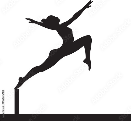 © Parvin, Naklejka premium Silhouette of a Female Athlete Hurdling: Black and White Vector Illustration of a Woman Jumping Over a Hurdle in a Sports Competition