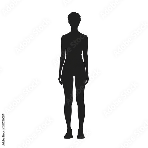 Fototapeta premium Silhouette of a female figure standing upright, on white background, perfect...