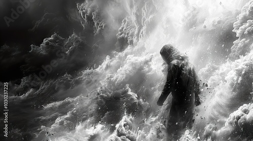 Obraz premium Silhouette of a Figure in a Stormy Sky