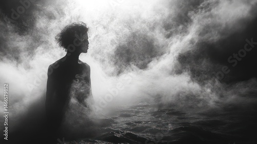 © Umi Sakina, Obraz premium Silhouette of a figure in misty water