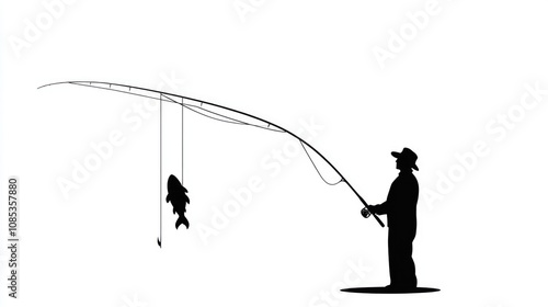 © Horsi, Obraz premium Silhouette of a Fisherman Holding a Fishing Rod with a Fish