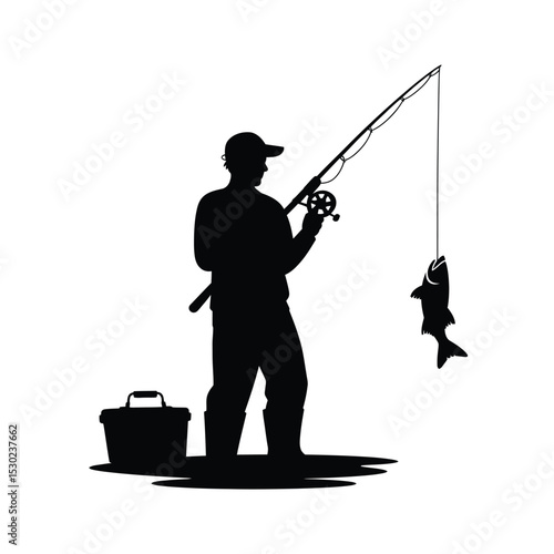 Obraz premium Silhouette of a Fisherman with a Catch on a Fishing Rod