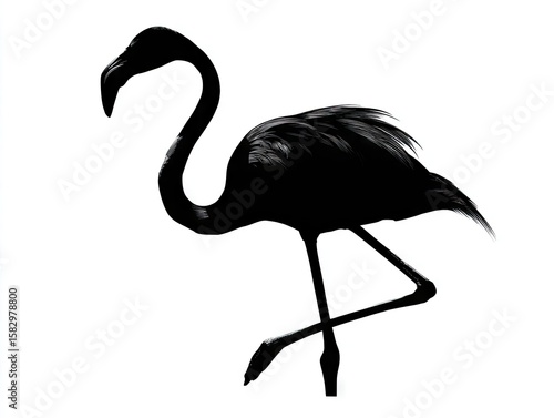 Fototapeta premium Silhouette of a flamingo, profile view, black ink, on white