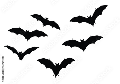 © Sultan Desain, Naklejka premium Silhouette of a flock of bats in flight against a white background.