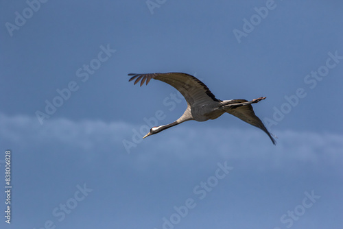 © Jarosław Kochnio, Obraz premium Silhouette of a flying crane against the sky