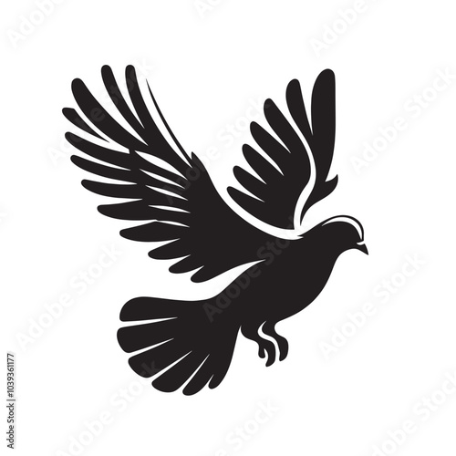 Fototapeta premium Silhouette of a flying dove, stylized bird illustration.