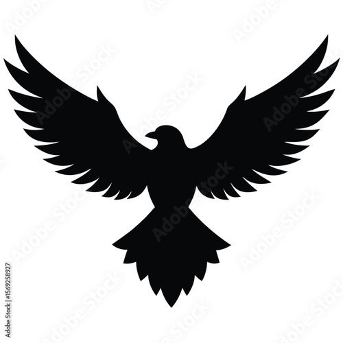 © Sirat Mahmood, Obraz premium Silhouette of a Flying Eagle with Spread Wings for Banner or Advertisement