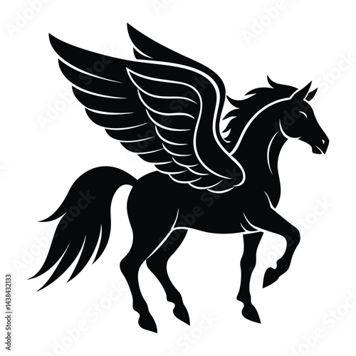 Fototapeta premium Silhouette of a Flying Pegasus with Majestic Wings in Black Design