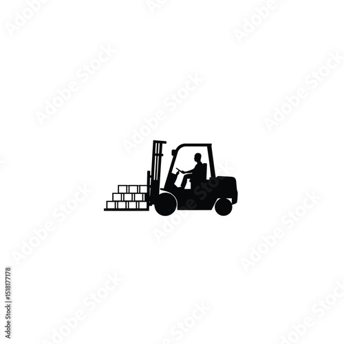 © KamrulHasan, Naklejka premium Silhouette of a forklift moving bricks on white background