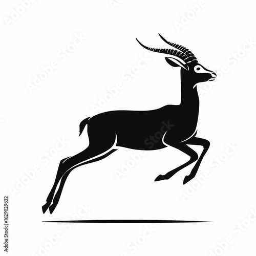 © SA7, Obraz premium Silhouette of a gazelle leaping gracefully across a plain white background.