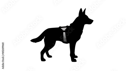 Obraz premium Silhouette of a german shepherd wearing a harness standing on a white background in a side view image
