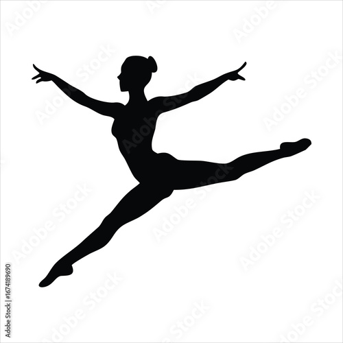 © Jannatun, Obraz premium Silhouette of a graceful ballerina performing a dynamic leap