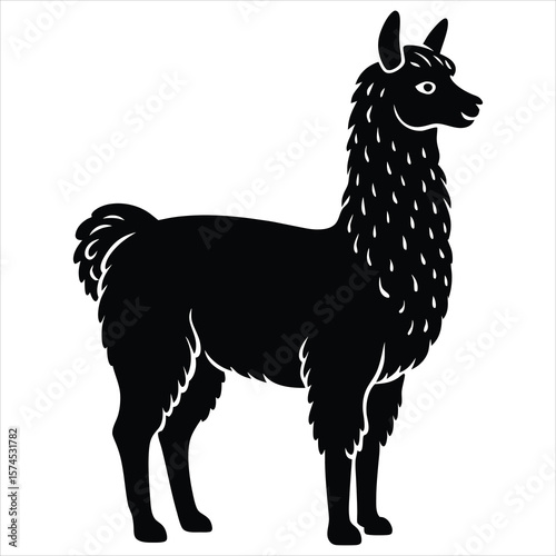 Fototapeta premium Silhouette of a Graceful Llama with Intricate Patterns on White