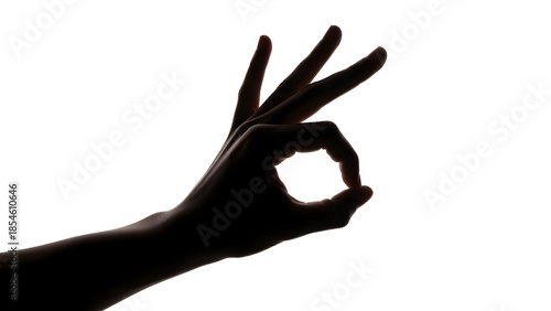 Fototapeta premium Silhouette of a hand forming the ok sign against a white background