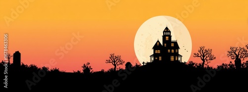 © Horsi, Naklejka premium Silhouette of a haunted house at sunset