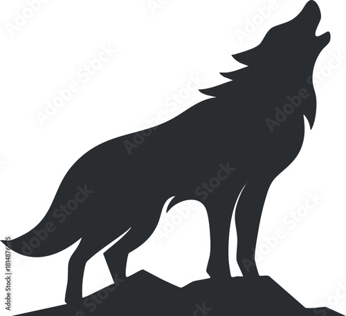 © vadymstock, Naklejka premium Silhouette of a howling wolf standing on a hill, representing wildlife and nature.