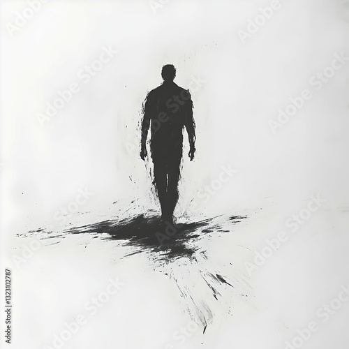 Fototapeta premium Silhouette of a Human Figure Against a Minimalistic White Background