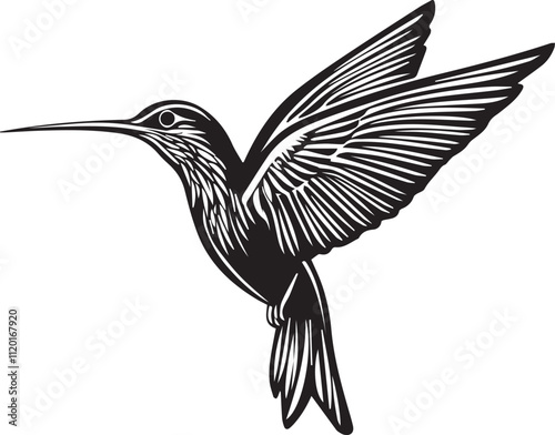 © Qurban Vector & Ai, Obraz premium Silhouette of a hummingbird in flight graphic vector on white background