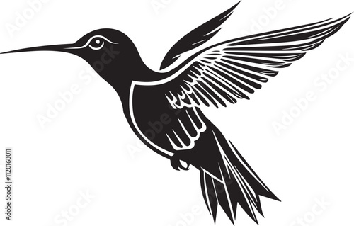© Qurban Vector & Ai, Obraz premium Silhouette of a hummingbird in flight graphic vector on white background