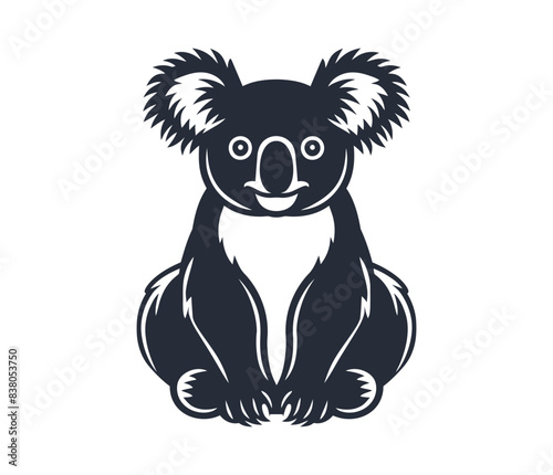 © Lion, Obraz premium Silhouette of a koala bear sitting with a simple black and white design. Flat vector illustration.