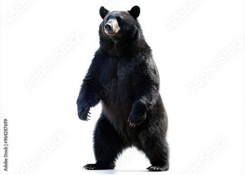 © Four888, Fototapeta premium Silhouette Of A Large Black Bear Standing Upright With Its Front Paws Raised, Isolated On A White Background