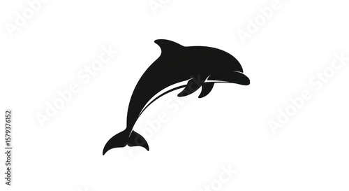 Fototapeta premium Silhouette of a leaping dolphin against a clean, white background.