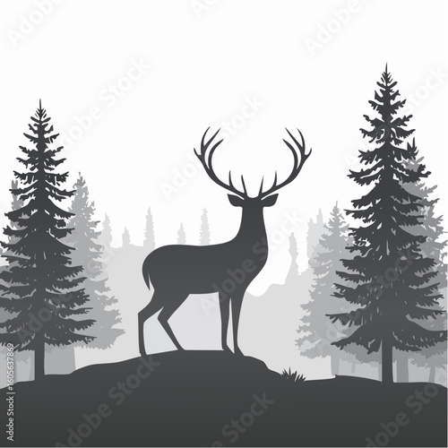 Obraz premium Silhouette of a Majestic Deer Standing Tall in a Dense Forest Scene