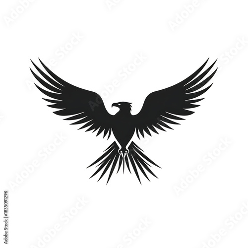 Fototapeta premium Silhouette of a majestic eagle in flight with wings spread wide isolated on...
