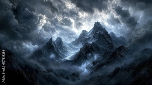 Fototapeta premium Silhouette of a majestic mountain peak against a dramatic cloudy sky...