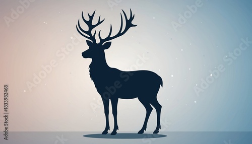 Naklejka premium Silhouette of a majestic stag with large antlers standing against a gradient...