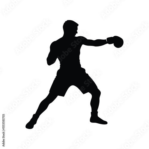 Naklejka premium Silhouette of a male boxer throwing a punch with boxing gloves