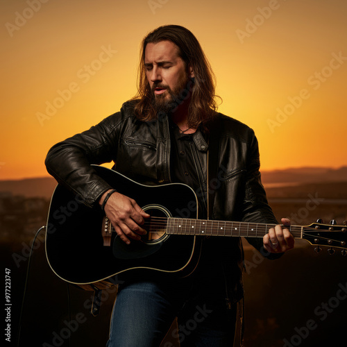 © ProArt Studios, Obraz premium silhouette of a male singer playing guitar
