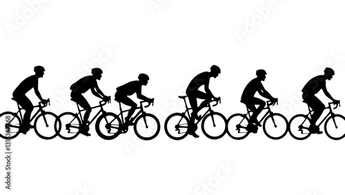 Fototapeta premium Silhouette of a man riding bicycle team, bike, bicycle, sport, silhouette, cycling, cyclist, vector, cycle, biker, people, mountain, biking, illustration, ride, wheel, race, woman, riding, black, exer