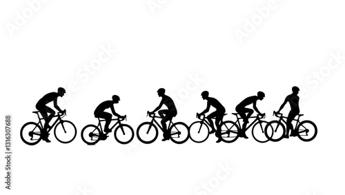 Fototapeta premium Silhouette of a man riding bicycle team, bike, bicycle, sport, silhouette, cycling, cyclist, vector, cycle, biker, people, mountain, biking, illustration, ride, wheel, race, woman, riding, black, exer