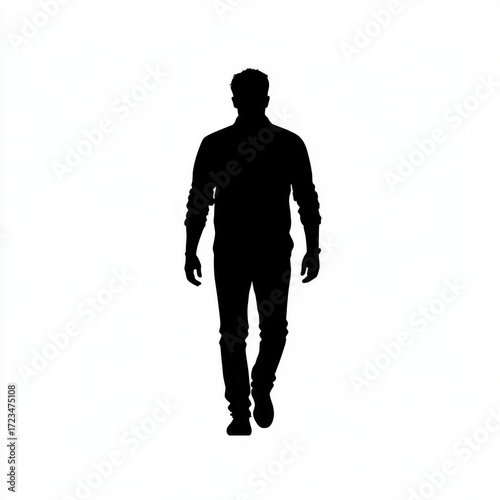 © Rungtiwa, Obraz premium Silhouette of a Man Walking Against a White Background