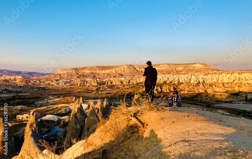 © Михаил Лисовец, Naklejka premium silhouette of a man walking in the mountains