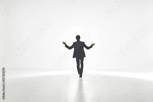 Obraz premium Silhouette of a man with arms out in a white studio