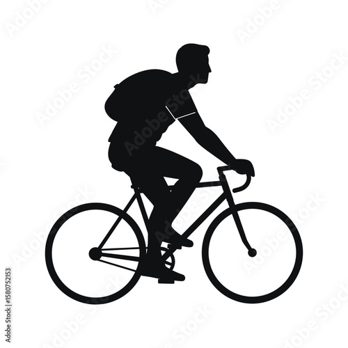 © Sneha, Fototapeta premium Silhouette of a Man with Backpack Riding a Bicycle Cycling Vector Illustration