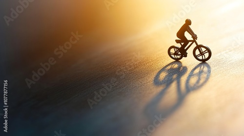 Obraz premium Silhouette of a Miniature Cyclist on a Reflective Surface with Soft Light...