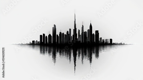 © Gultus, Naklejka premium Silhouette of a modern city reflected in water.