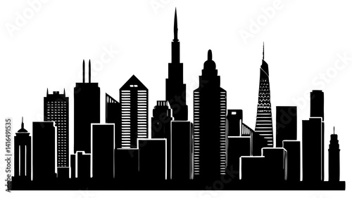 © Muhammad, Fototapeta premium Silhouette of a Modern City Skyline at Night