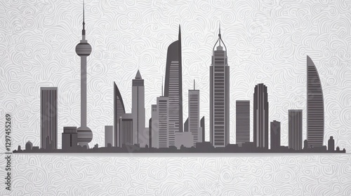 Naklejka premium Silhouette of a modern city skyline featuring iconic skyscrapers against a textured background