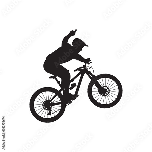 © Vector Vander, Naklejka premium Silhouette of a Mountain Biker in MidAir Vector Illustration.