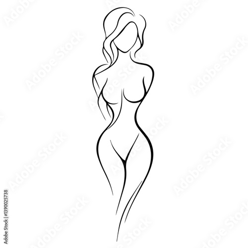 © Ramesh Design, Fototapeta premium Silhouette of a naked woman line art