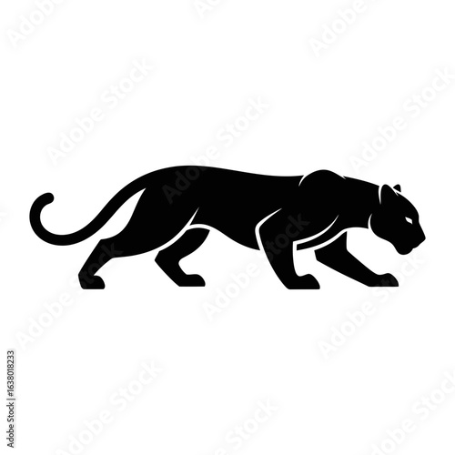 © Murda, Obraz premium Silhouette of a panther walking with its tail curled.