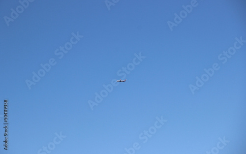 © vanillamuss, Fototapeta premium Silhouette of a passenger plane against a clear sky